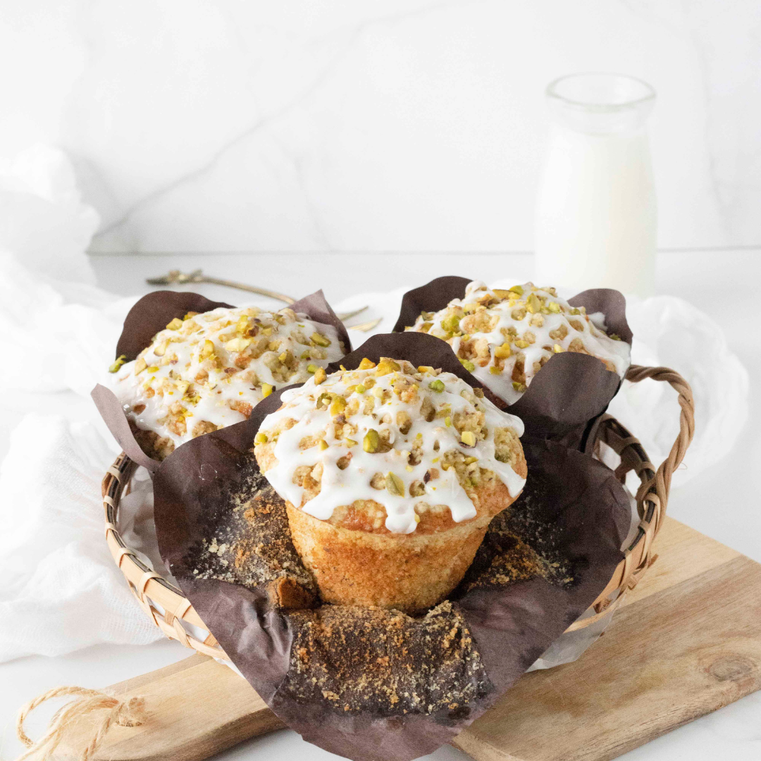 Ingredients: Sugar, egg, wheat flour, canola oil, wholemeal wheat flour, pistachios, lemon juice, icing sugar, water, candied mixed peel, wheat starch, butter, baking powder, lemon flavour , vanilla flavour powder, emulsifier, salt, guar gum, sodium alginate, sodium bicarbonate, vanilla flavour