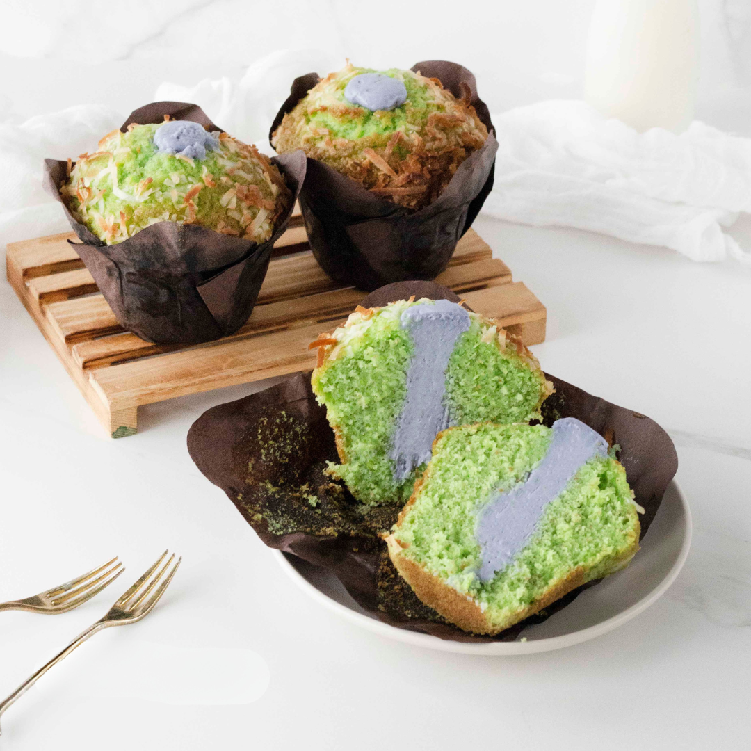 Ingredients: Sugar, coconut cream, egg, wheat flour, canola oil, cream cheese, wholemeal flour, coconut flakes, wheat starch, icing sugar, pandan flavour, baking powder, desiccated coconut, vanilla flavour powder, emulsifier, butterfly pea powder, lemon juice, guar gum, sodium alginate, salt, sodium bicarbonate, coloring