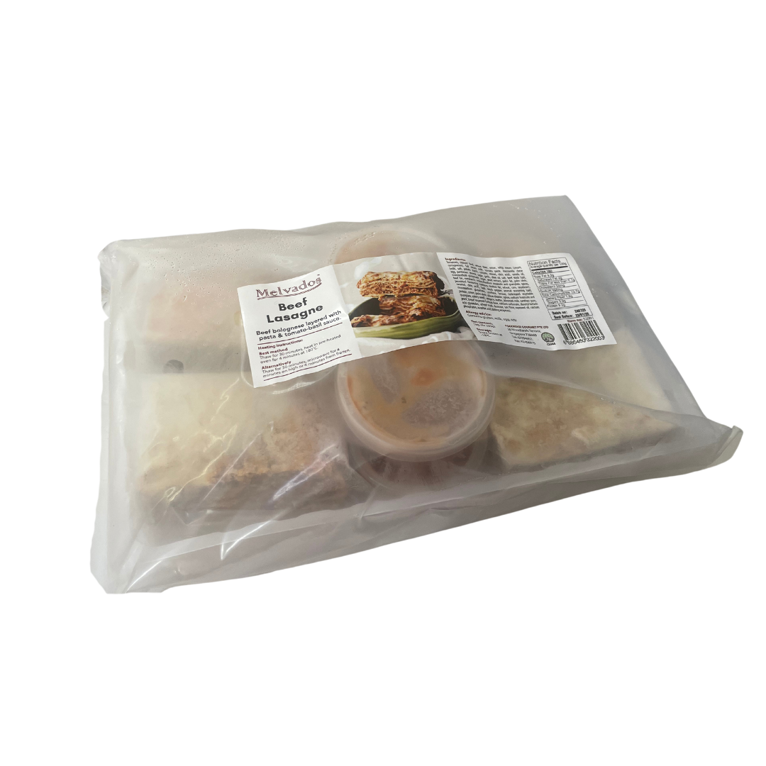 Each individually wrapped lasagna piece comes with our homemade tomato basil sauce separately packed.