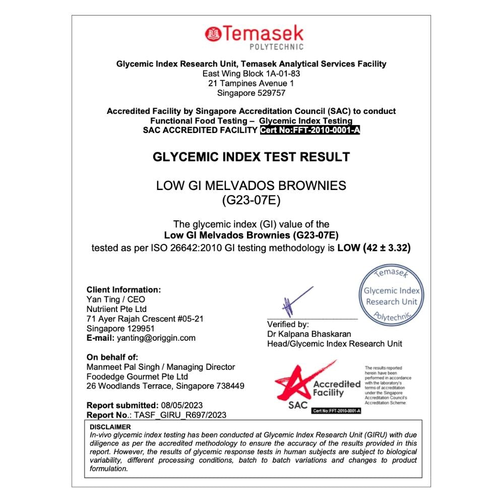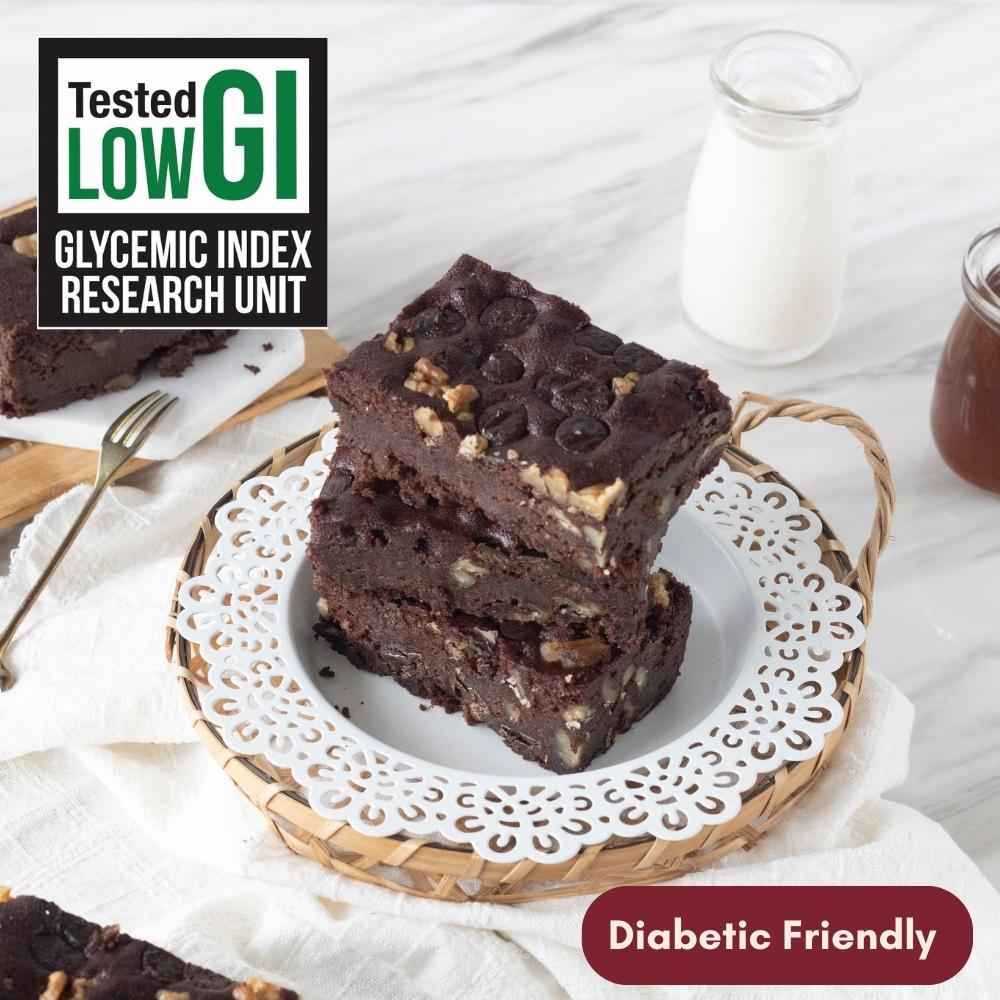 Introducing our exclusive Low GI brownie certified suitable for type 2 diabetics. Made in partnership with Nutriient, this option ensures that you get to indulge in the chocolate fudge brownie that you love while ensuring your blood sugar levels do not rise.