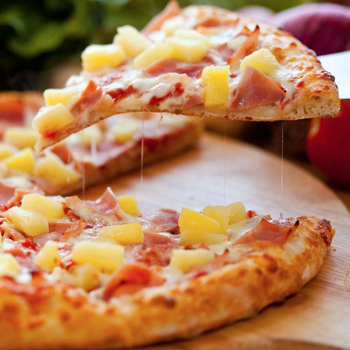 Classic Hawaiian Pizza made with sweet pineapples and soft chicken ham.