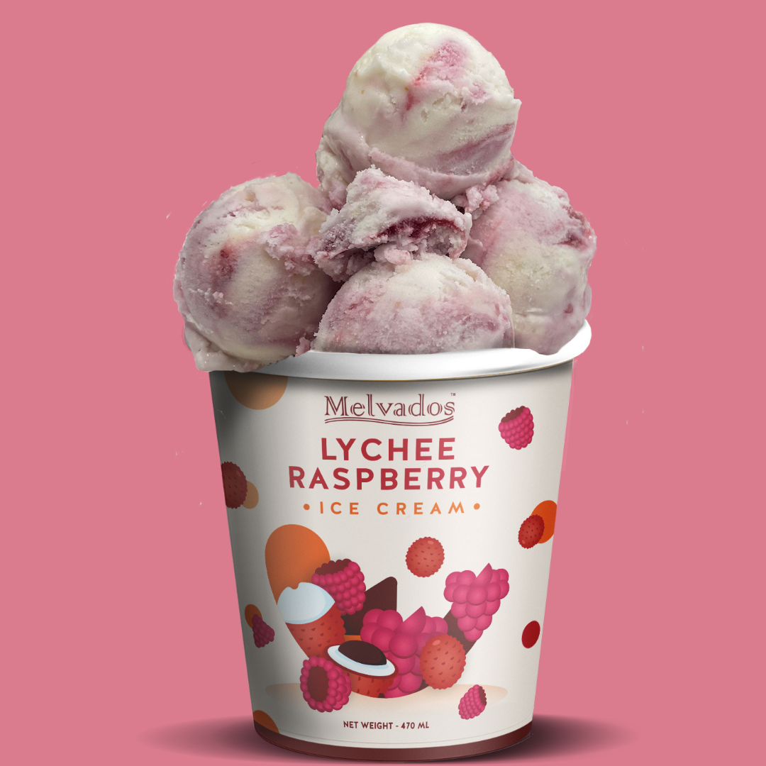 A creamy and smooth ice cream made with cream, milk and real lychee. Home-made raspberry jam is then generously swirled in. A slightly sweet, slightly tart flavour - extremely refreshing!