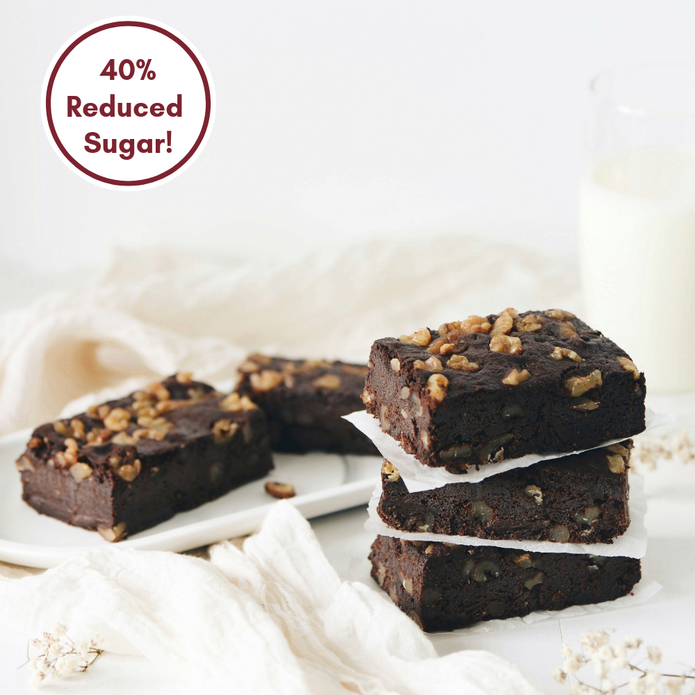Now introducing a new Dark Chocolate Brownie with 40% less sugar than our traditional recipe. Does not contain any sugar substitutes - simply made with low fat cocoa powder and 72% dark chocolate. Healthier choice symbol in the process.