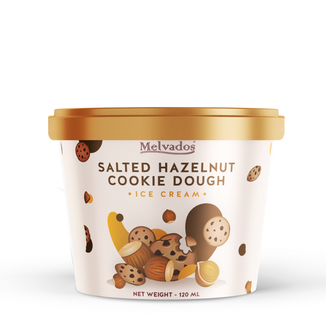 A unique combination of roasted hazelnuts and cookie dough chunks go perfectly in this crazy Melvados invention!