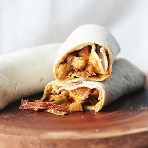 Spicy potato filling with Italian herbs, vegetables and parmesan in a flour tortilla makes this wrap a hearty choice.